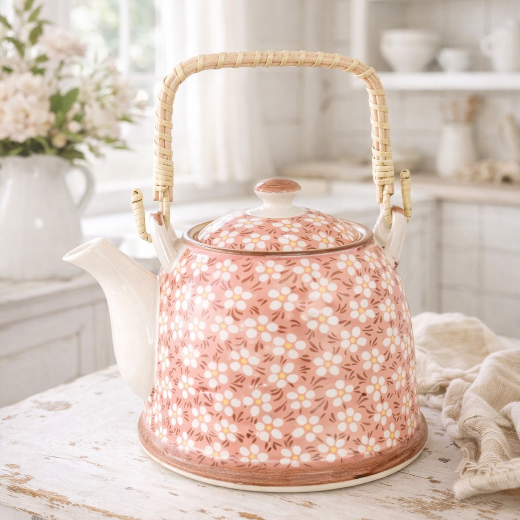 Entdecke die nostalgische Teekanne im floralen Design. Mit der Teekanne mit ihrem integrierten Sieb kannst du ganz einfach deine Lieblingstees zubereiten – ob lose Blätter oder Beutel. Der praktische Deckel sorgt dafür, dass die Wärme optimal gespeichert wird, sodass jeder Schluck eine wahre Genussreise ist. Volumen: 700 ml