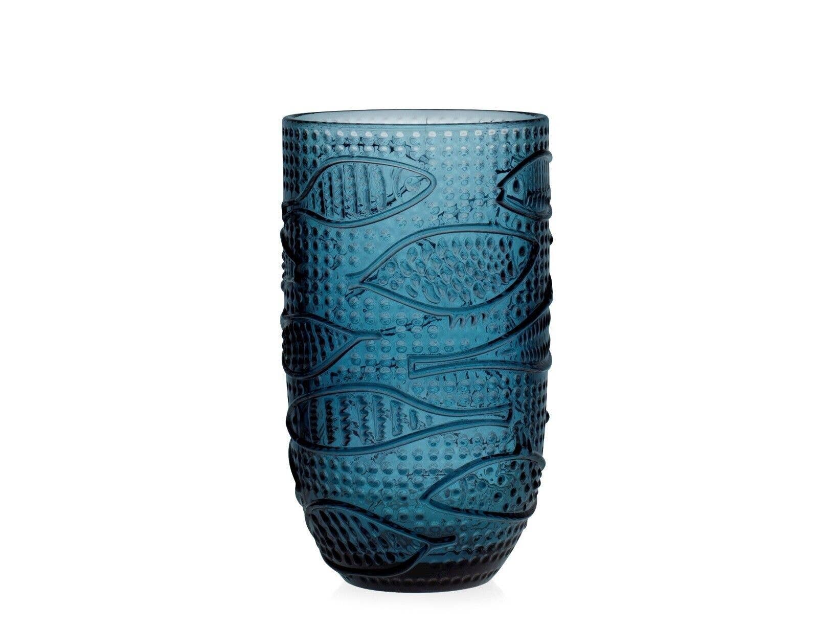 Glas ATLANTICO, Blau mit Fischdekor, 4er Set