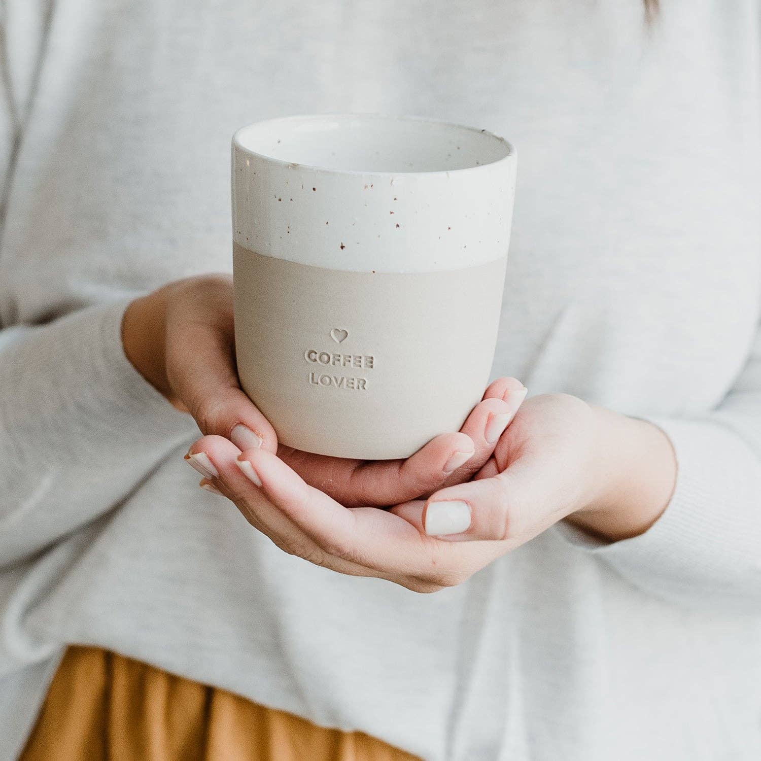 Das minimalistische Design und die natürlichen Farbnuancen werden von einer wunderschönen Blindprägung „Coffee Lover“ abgerundet. Eine kleine Töpferei aus Portugal produziert diesen wundervollen Becher in liebevoller Handarbeit und ist ein großartiger neuer Begleiter auf unserem kreativen Weg. Unsere Becher lassen die Herzen höher schlagen, die Individualität von Ton & Glasur lieben, denn jeder einzelne Becher hat seinen ganz eigenen Touch.