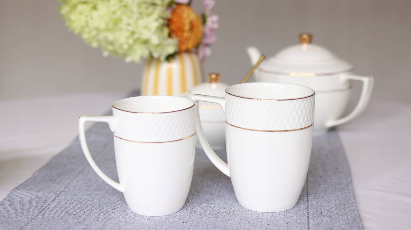 Weiße Porzellantasse mit Golddekor Alle Produkte der Wilmax Diamond-Kollektion sind aus hochwertigem Porzellan gefertigt. Dies ist robustes und elegantes weißes Gebrauchsporzellan. Porzellan mit goldenen Akzenten sorgt für eine einzigartige Atmosphäre auf dem Tisch. Golddekorationen verleihen jedem Tisch Prestige und unterstreichen die Einzigartigkeit des Augenblicks.