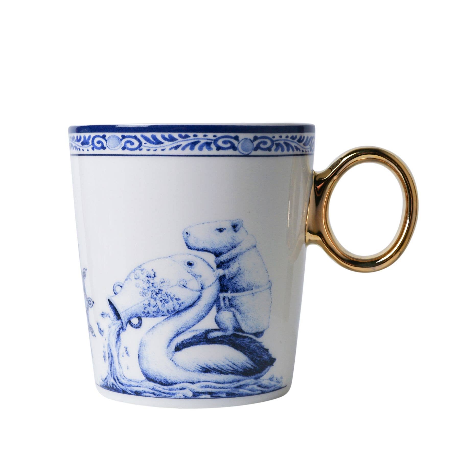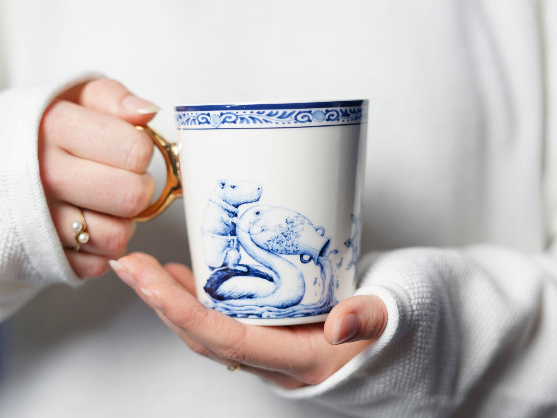Eine Delfter blaue Tasse mit dem Sternzeichen Wassermann darauf. Diese Sternzeichentasse wurde von dem bildenden Künstler Redmer Hoekstra entworfen. Seine Illustrationen erkennt man sofort an ihrem humorvollen und verträumten Stil. Ein bunter Umzug surrealistischer Figuren aus dem Tierkreis, die in die Welt von Heinen Delfts Blauw einmarschieren, kriechen oder rollen. Bekannte Vasen und Geschirrstücke sind die ungewöhnlichen Transportmittel dieser astrologischen Tiere. Diese besondere Tassenkollektion entführt dich in eine neue Welt voller Humor. Auf dieser Tasse hat Redmer Hoekstra seine eigene Interpretation des Sternzeichens Wassermann gestaltet. Dieses reiselustige Capybara hat beschlossen, seine Freiheit zu genießen und sich auf die Suche nach neuen Herausforderungen zu machen. Es kann prima selbst schwimmen, hat sich aber überlegt, dass es mit seinem kreativen Gefährt seine Reise viel länger durchhalten kann.