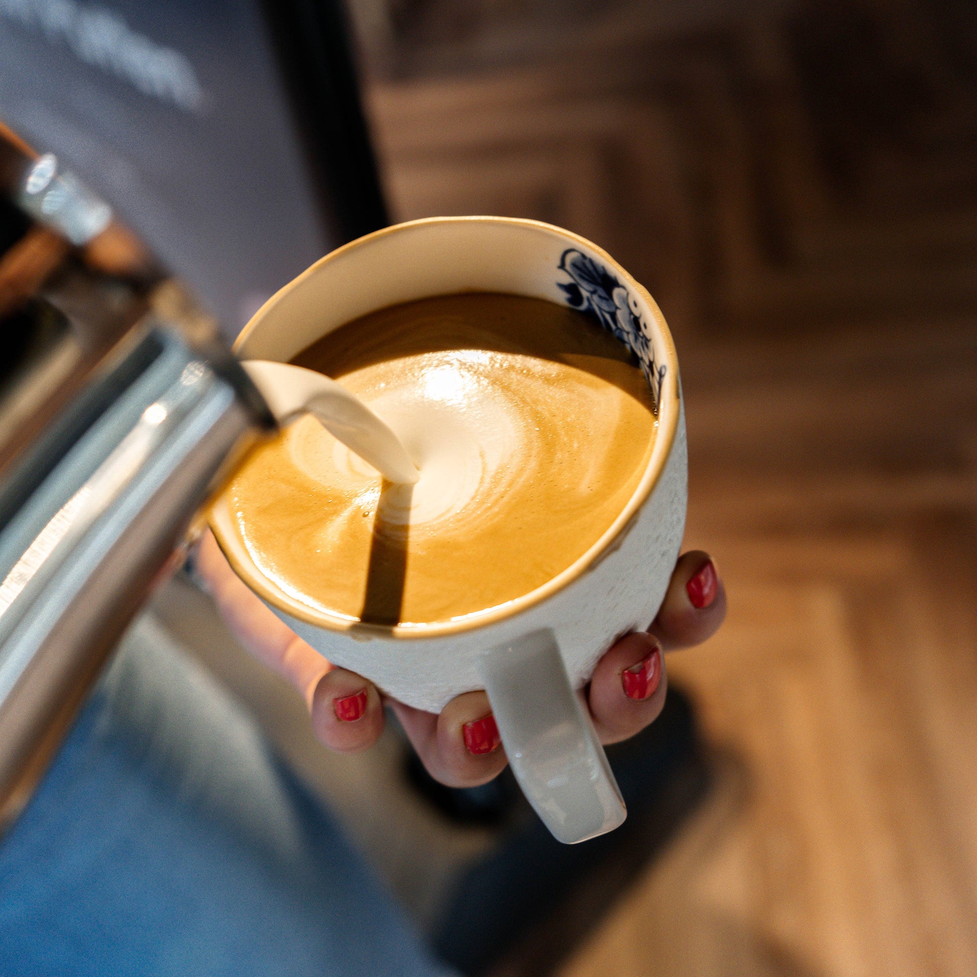 Die Blauw Bloesem Kollektion ist an dem charakteristischen Rand zu erkennen, der an altes Steingut erinnert. Da dieser Rand von Hand geformt wird, können Abweichungen in Farbe und Struktur auftreten. Dieses wunderschöne Ergebnis spiegelt die Schönheit der alten Handwerke wider; eine feine Porzellantasse mit Henkel aus der Blauw Bloesem Kollektion. Laut der Designerin Debbie Wijskamp liegt viel Schönheit im Vergänglichen und Unvollkommenen verborgen. Mit dem Geschirr Blauw Bloesem liefert sie den Beweis dafür. Das Geschirr Blauw Bloesem zeichnet sich durch klassische, runde Formen und sanfte Linienführungen aus. Dadurch kommen die Texturen und die Delfter blauen Dekorationen gut zur Geltung. „Normalerweise befinden sich auf Delfter blauem Geschirr große Dekorationen, aber ich wollte gerade kleine Teile herausnehmen und diese an einer Seite des Steinguts platzieren. Die Dekoration kriecht sozusagen aus dem Rand heraus. Das verleiht dem Geschirr ein ruhiges Aussehen.