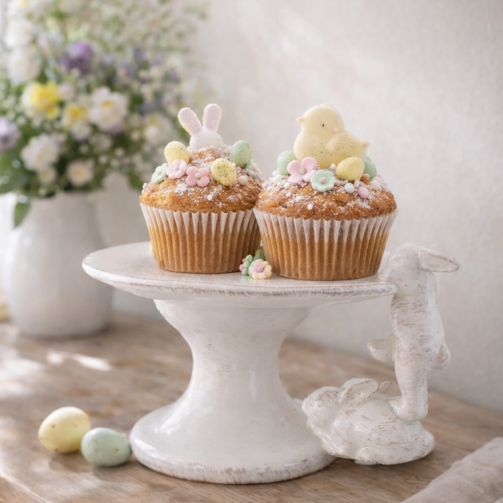 Ständer aus weißer Keramik mit Hasendekor