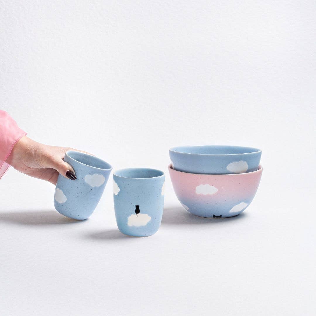 Entdecke unsere neueste Ergänzung der Wolkenkollektion: eine Müsli-Schale, gepaart mit einem Cup, beide verziert mit niedlichen Meow's. Gefertigt aus strapazierfähigem Steinzeug, vereint dieses charmante Set die Ruhe des blauen Himmels mit einem Hauch von verspieltem Katzencharme. Perfekt, um Ihren Frühstücks- oder Teeritualen ein wenig Freude zu verleihen. 🌤️🐾