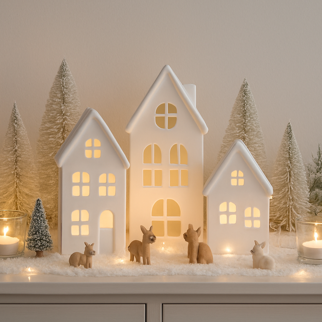 Entdecke unser Winterdorf mit dekorativen Lichthäusern, die mit ihrer süßen Gestaltung und romantischen Beleuchtung jeden Raum in eine gemütliche Oase verwandeln. Ob auf Regalen, Fensterbänken oder als Teil eines stilvollen Arrangements – diese vielseitigen Akzente schaffen stets eine herzliche Atmosphäre und laden zum Träumen ein. Perfekt für jede Ecke in deinem Zuhauses oder für deine Liebsten! Set = 3 Häuschen