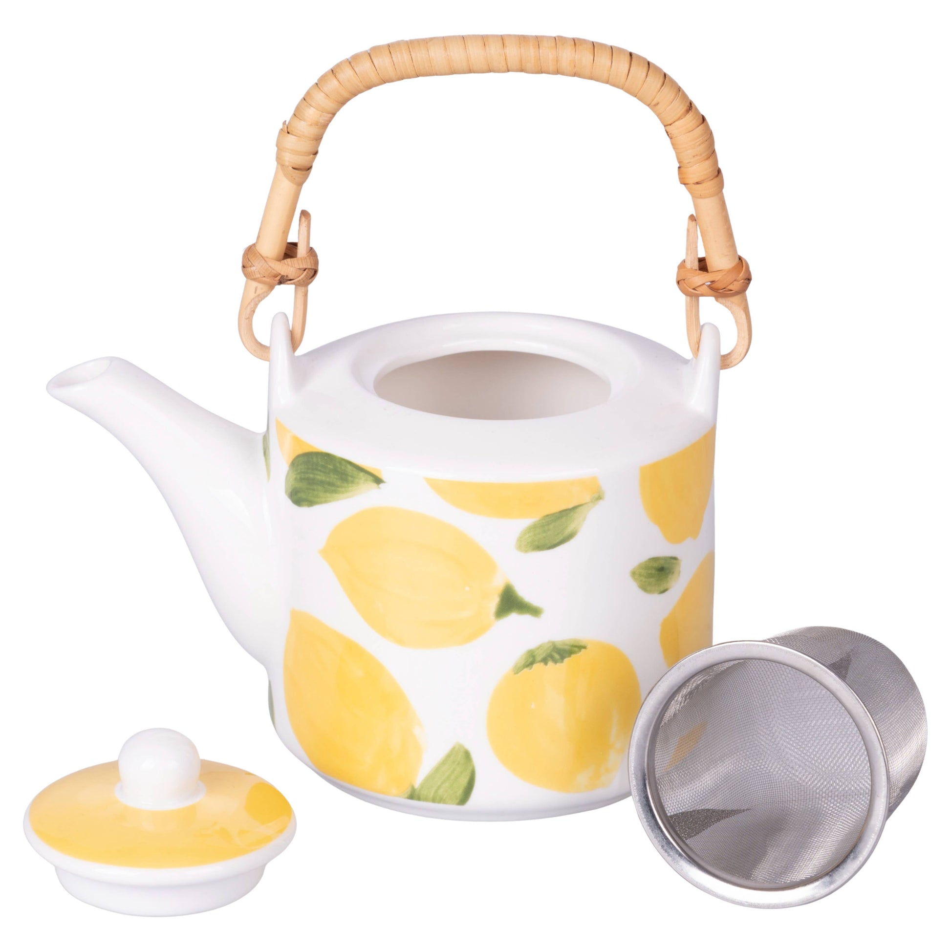 Entdecken Sie die Teekanne „Fruit Life“ mit zwei passenden Tassen aus feinem Porzellan! Der geflochtene Bambusgriff sorgt für einen modernen Touch, während der integrierte Edelstahlfilter das Teetrinken zum Genuss macht. Mit ihrem frischen Zitronen-Dekor bringt sie Farbe in jede Teestunde – ideal für entspannte Momente mit Freunden!