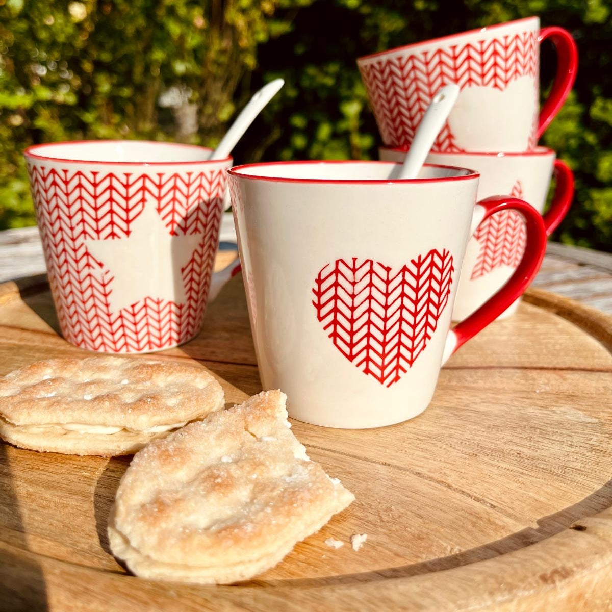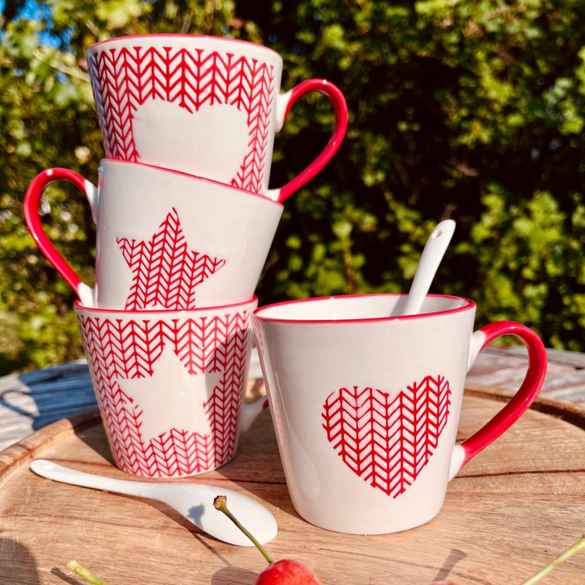 Entdecken Sie unser charmantes Set aus 4 Henkel-Tassen aus feinstem New Bone China! In elegantem Weiß mit einem lebhaft roten Design bringen sie frischen Wind in jede Kaffeepause. Ideal für gesellige Runden oder einen entspannte Teatime. Hol dir das Set und genieße deinen Kaffee oder Tee stilvoll! Set = 4 Stück, 4 Motive
