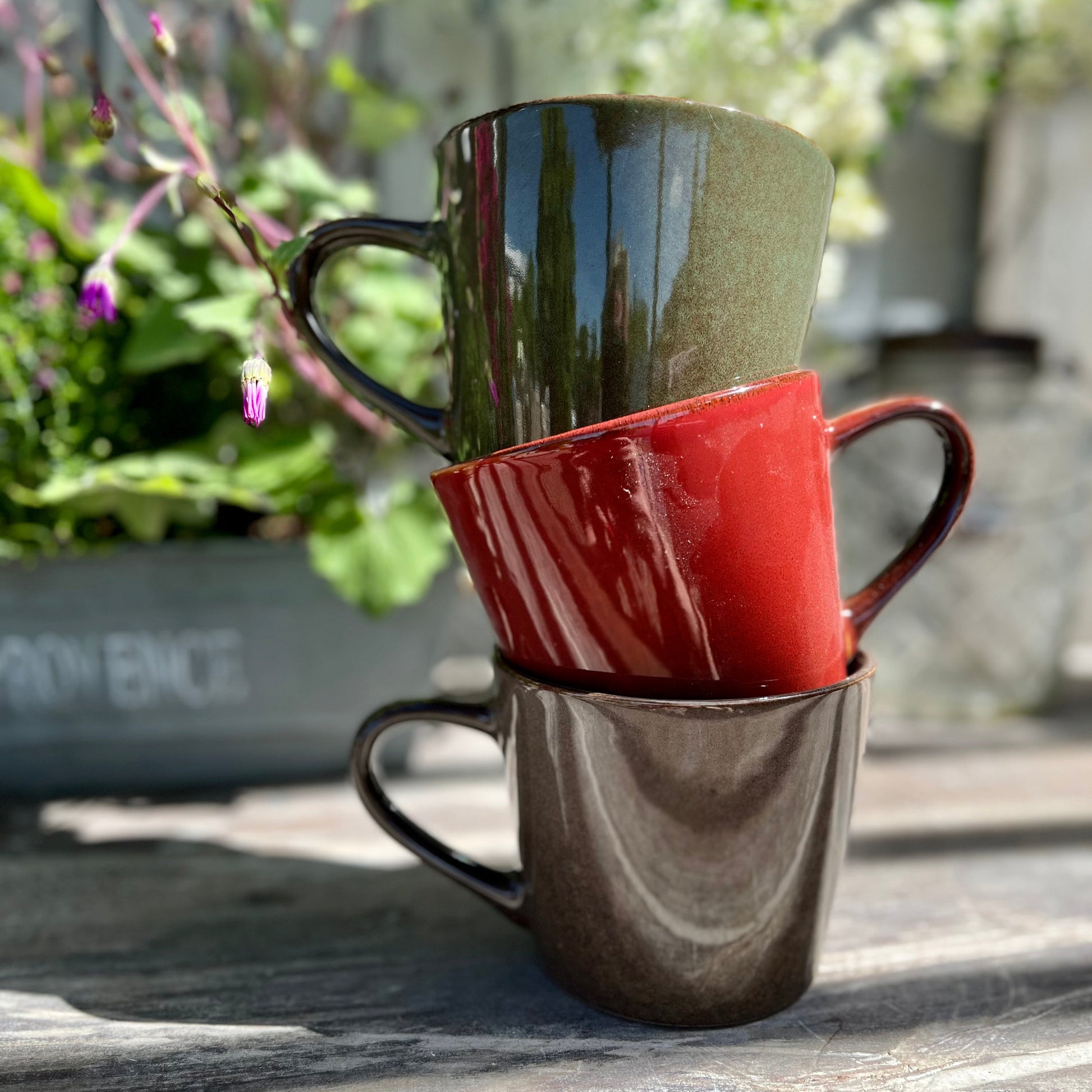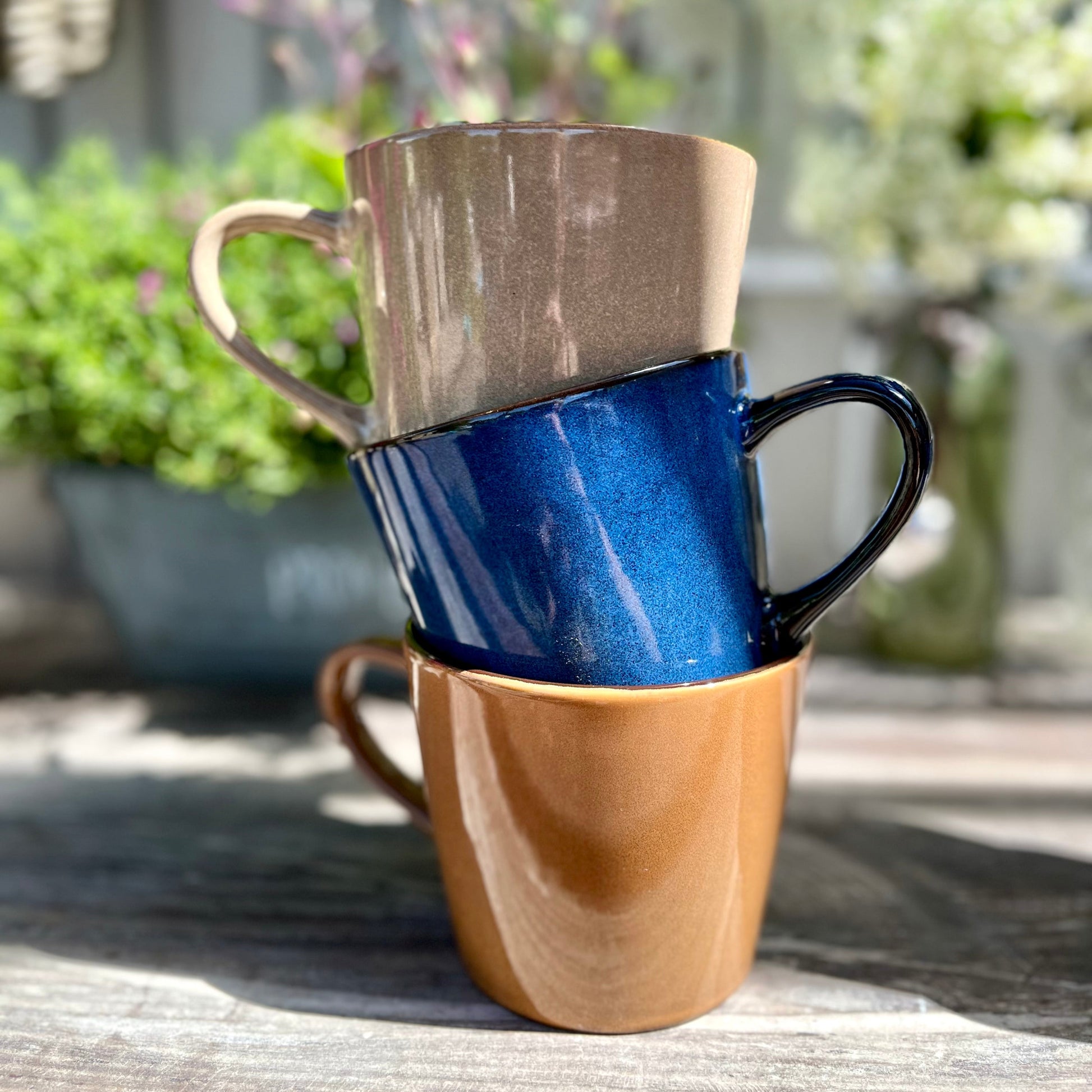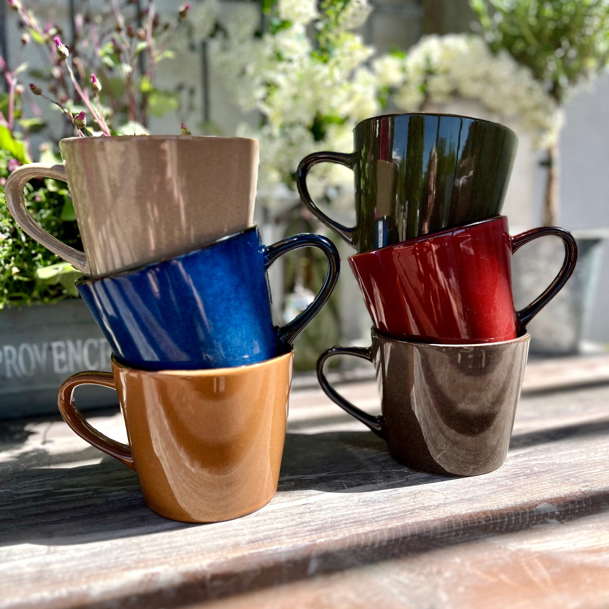 Entdecke die Jumbo-Tassen Tierra aus hochwertigem Steingut, die auch ohne Untertasse begeistern. Ihre glasierten, jedoch rauen Oberflächen zeugen von handwerklicher Qualität. Das rustikale Flair harmoniert perfekt mit dem minimalistischen Stil – ideal für jede Kaffeepause! Set = 6 Stück, je Farbton 1 Tasse