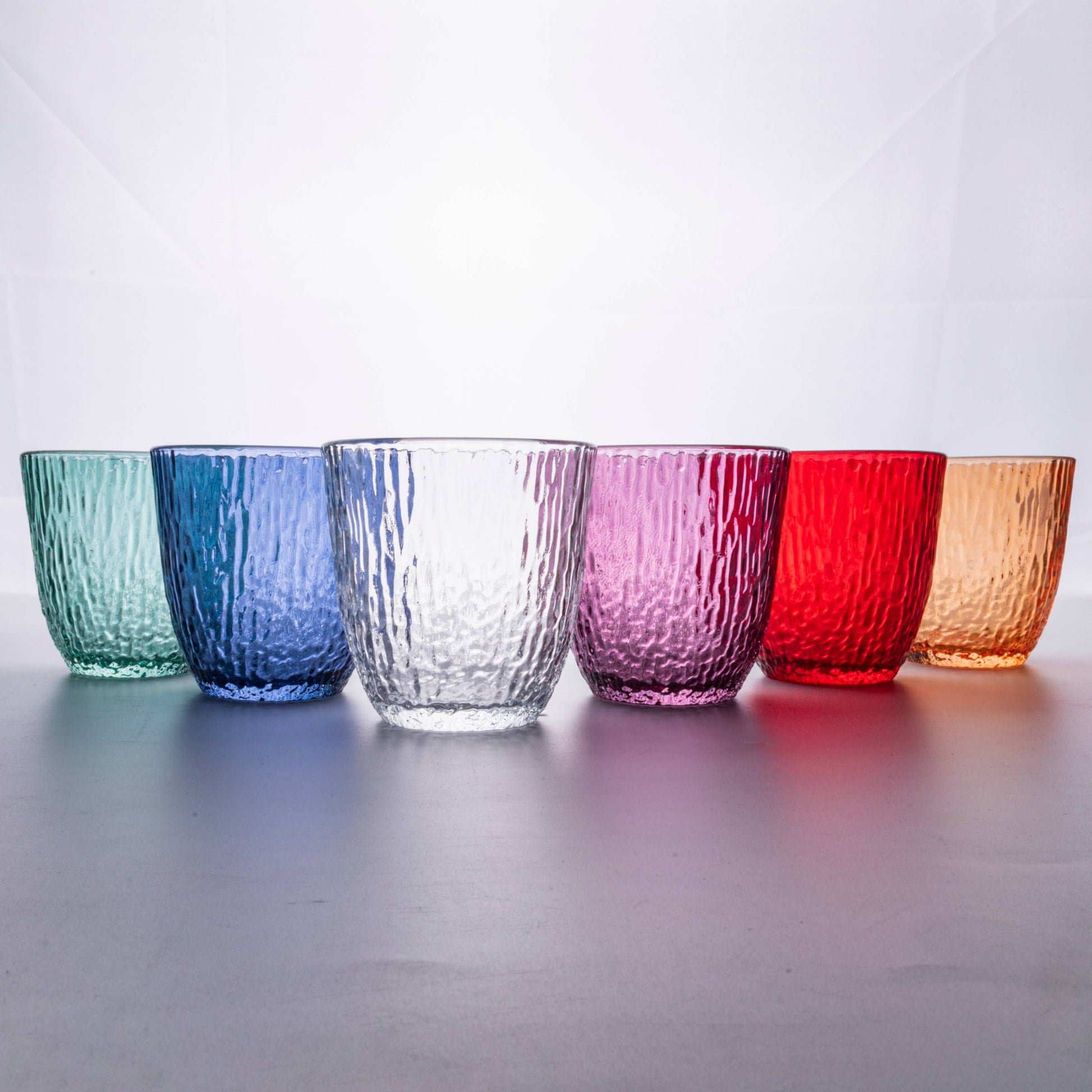 Bunte Wassergläser bringen frischen Wind auf den Tisch! Sie sind nicht nur praktisch, sondern auch ein echter Hingucker. Ob bei einer Gartenparty oder beim gemütlichen Abendessen – die leuchtenden Farben sorgen für guten Laune und machen jedes Getränk zum Erlebnis. Lass deiner Kreativität freien Lauf und mixe die Farben nach Lust und Laune! Das Set besteht aus 6 Farben: Rot, Orange, Rauch, Blau, Türkis und Lila.