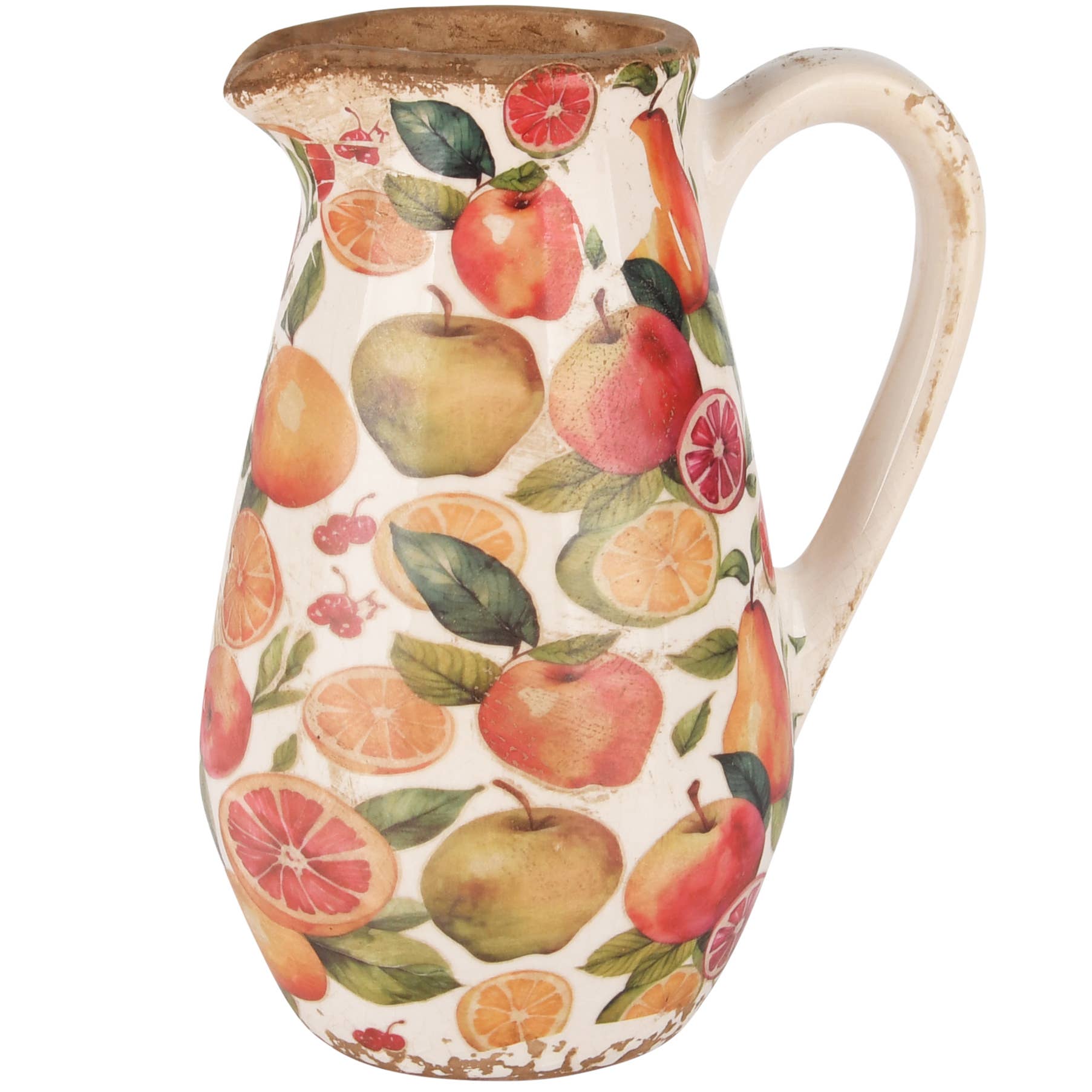 Inmitten der goldenen Äpfel und prallen Birnen des Erntefests strahlt der Keramik-Krug eine liebevolle Vintage-Atmosphäre aus. Der Krug, geschmückt mit farbenfrohem Obst, dass die reiche Ernte symbolisiert, während die Farben der Natur uns in eine Welt voller Freude und Dankbarkeit entführen.