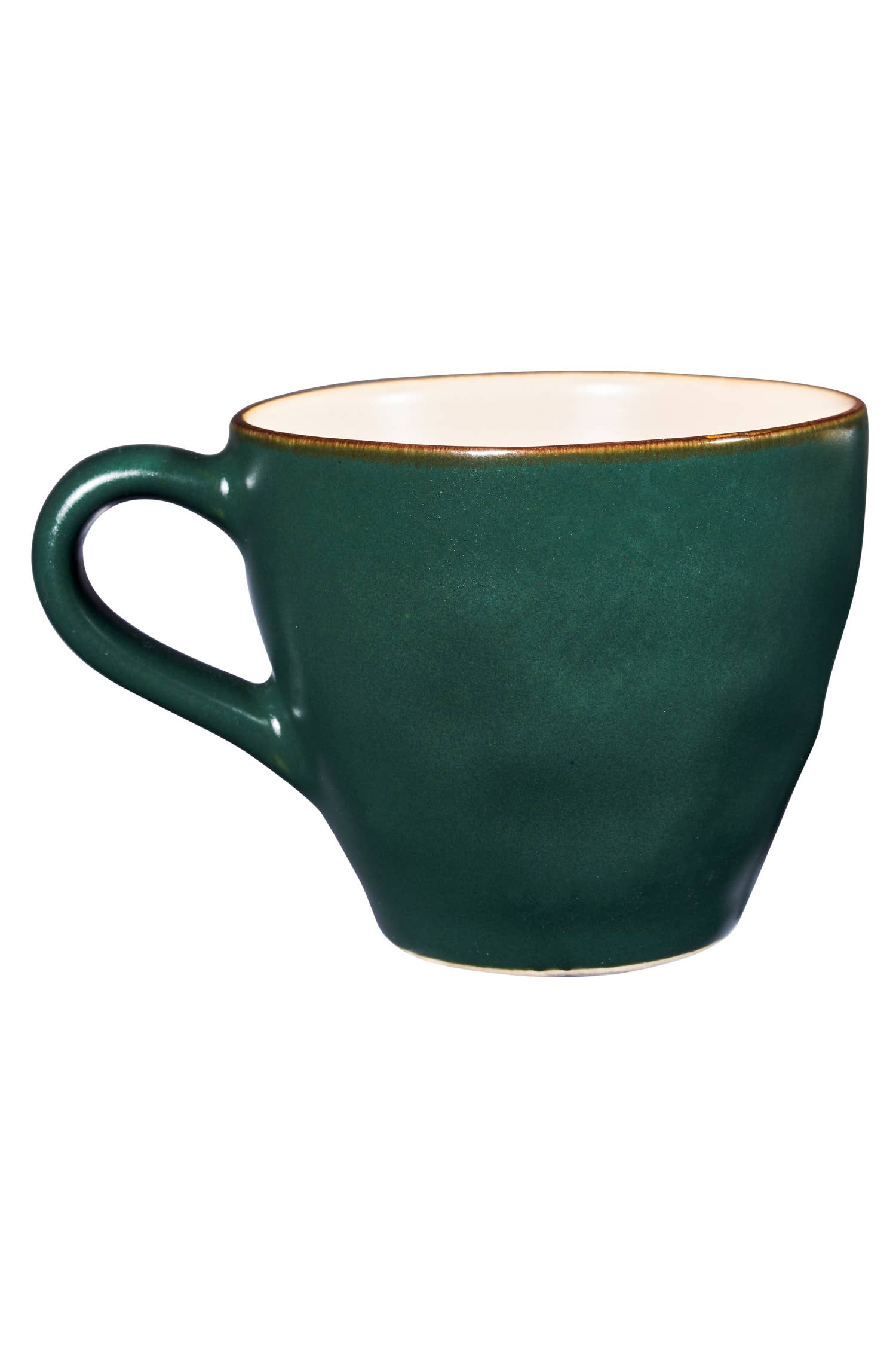 Entdecken Sie die bezaubernde Espressotasse mit Untertasse aus der Serie MEDITERRANEO in einem tiefen, satten Dunkelgrün. Diese handgefertigte Keramiktasse bringt ein Stück mediterranes Flair in dein Zuhause. Jedes Stück ist einzigartig und strahlt mit seiner sanften glasierten Oberfläche Wärme und Gemütlichkeit aus.