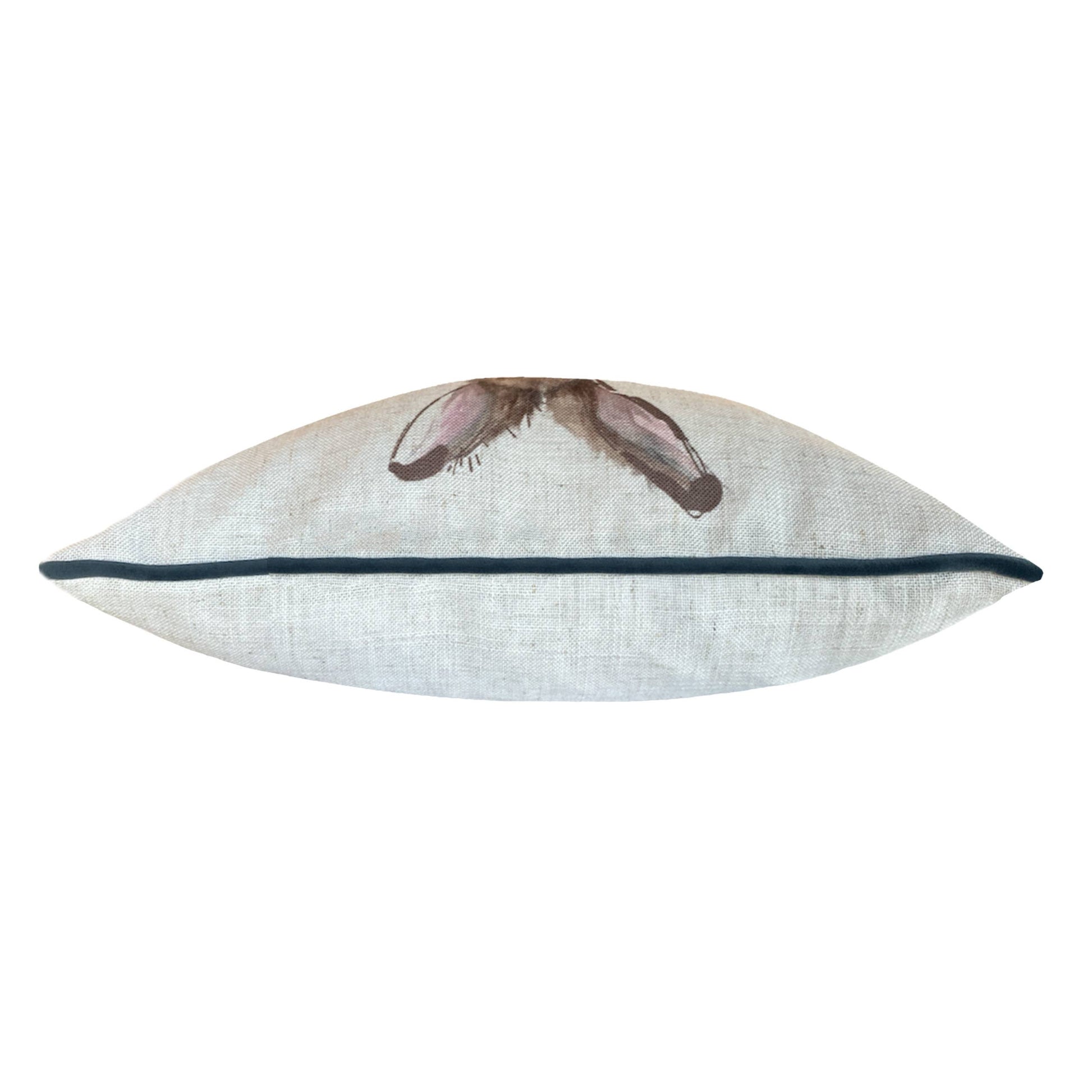 Bringen Sie mit diesem entzückenden, handbemalten Hasen-Design etwas Wildnis in Ihr Zuhause. Das ansprechende Bild eines aufmerksam sitzenden Hasen vor einem naturfarbenen Leinenoptik-Hintergrund macht dieses Kissen zur perfekten Ergänzung für jedes Interieur. Es zeigt einen schönen aufrecht sitzenden Hasen zwischen Wiesengras auf einem Leinwand-ähnlichen Stoff. Rückseite in Leinenoptik, kontrastierende Paspelierung und verdeckter Reißverschluss runden das Design ab.
