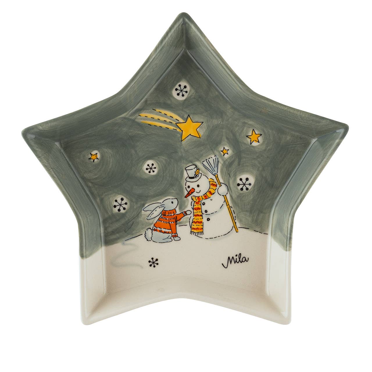 Hey little Showman, ich erzähle dir eine Geschichte ... Unser märchenhaftes Design öffnet alle Herzen. Etwas Lebkuchenduft und Puderzuckerschnee, es ist die schönste Zeit des Jahres. Unser hübsches Paar der Schneemann und der Schneehase sind fein gemalt und stehen auf einer traumschönen Winterlandschaft mit Eisblumen. Das lädt zum gemütlichen Lesen, Geschichten teilen und gemeinsamen Sternschnuppen schauen ein. Make a wish!