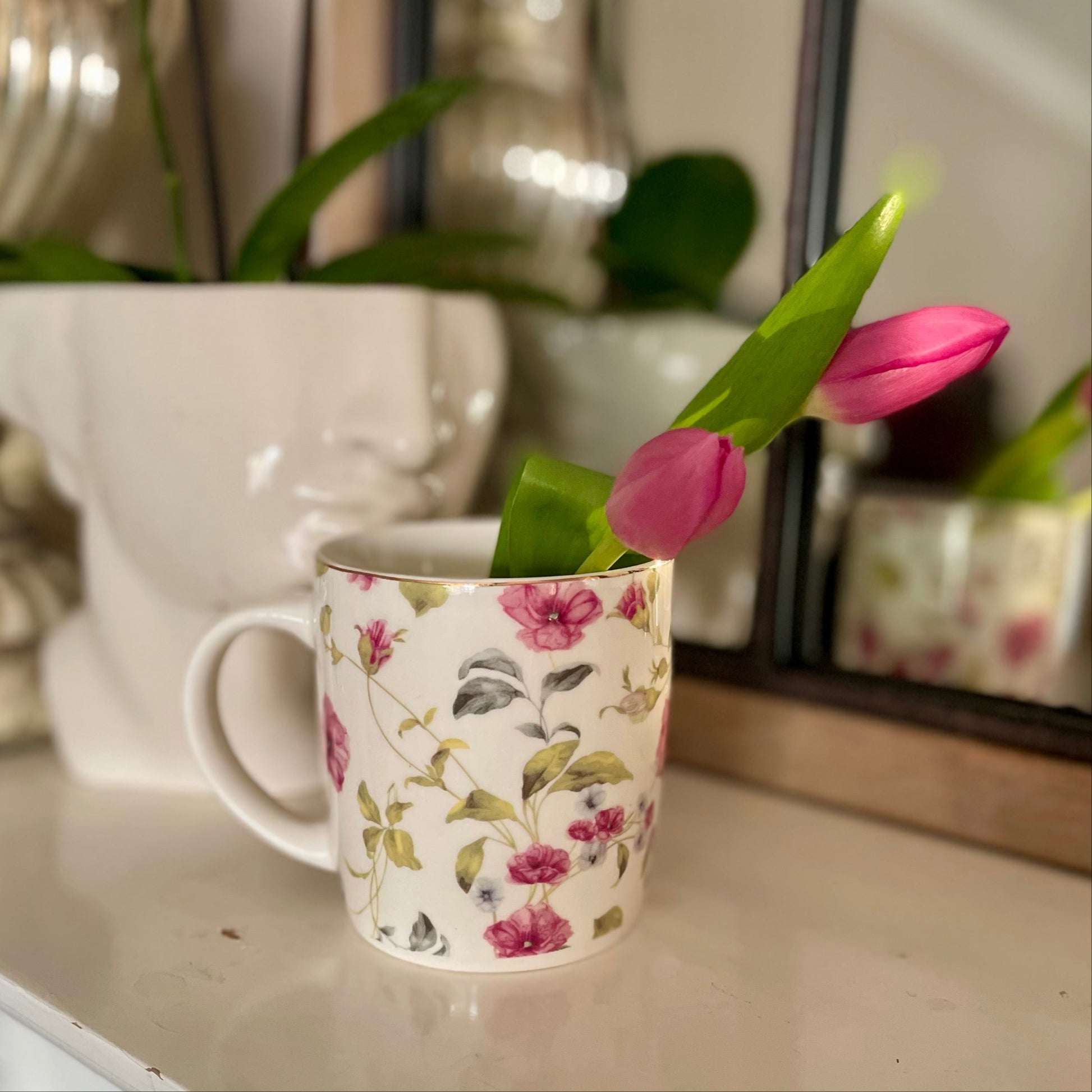 Unsere exquisiten Teebecher aus weißem und rosafarbenem Porzellan mit floralen Motiven bieten ein raffiniertes und stilvolles Trinkerlebnis. Die harmonische Farbgestaltung und die eleganten Blumenmuster machen diese Tasse zu einem Blickfang, der deinen Teegenuss bereichert. Perfekt für genussvolle Momente.