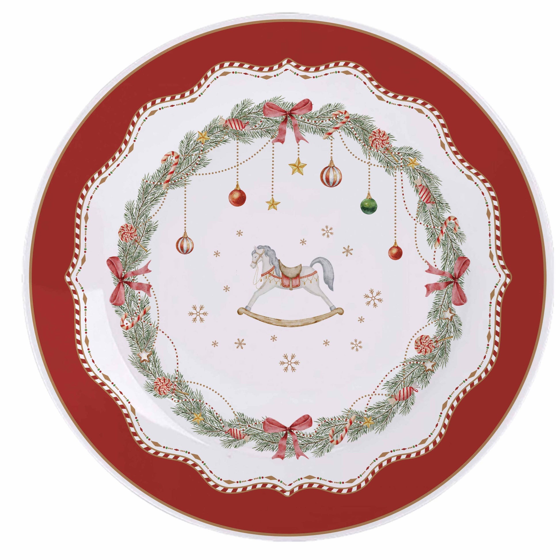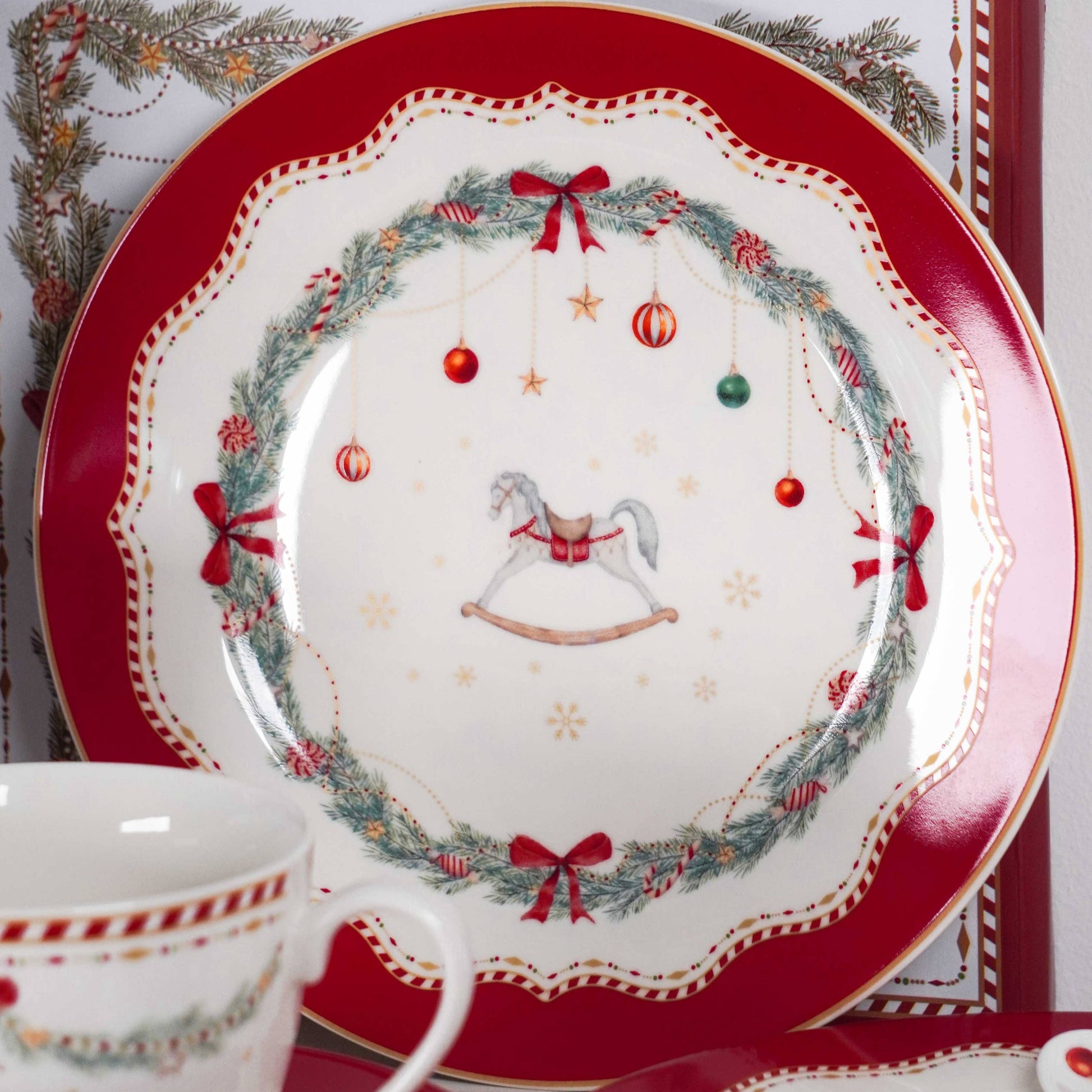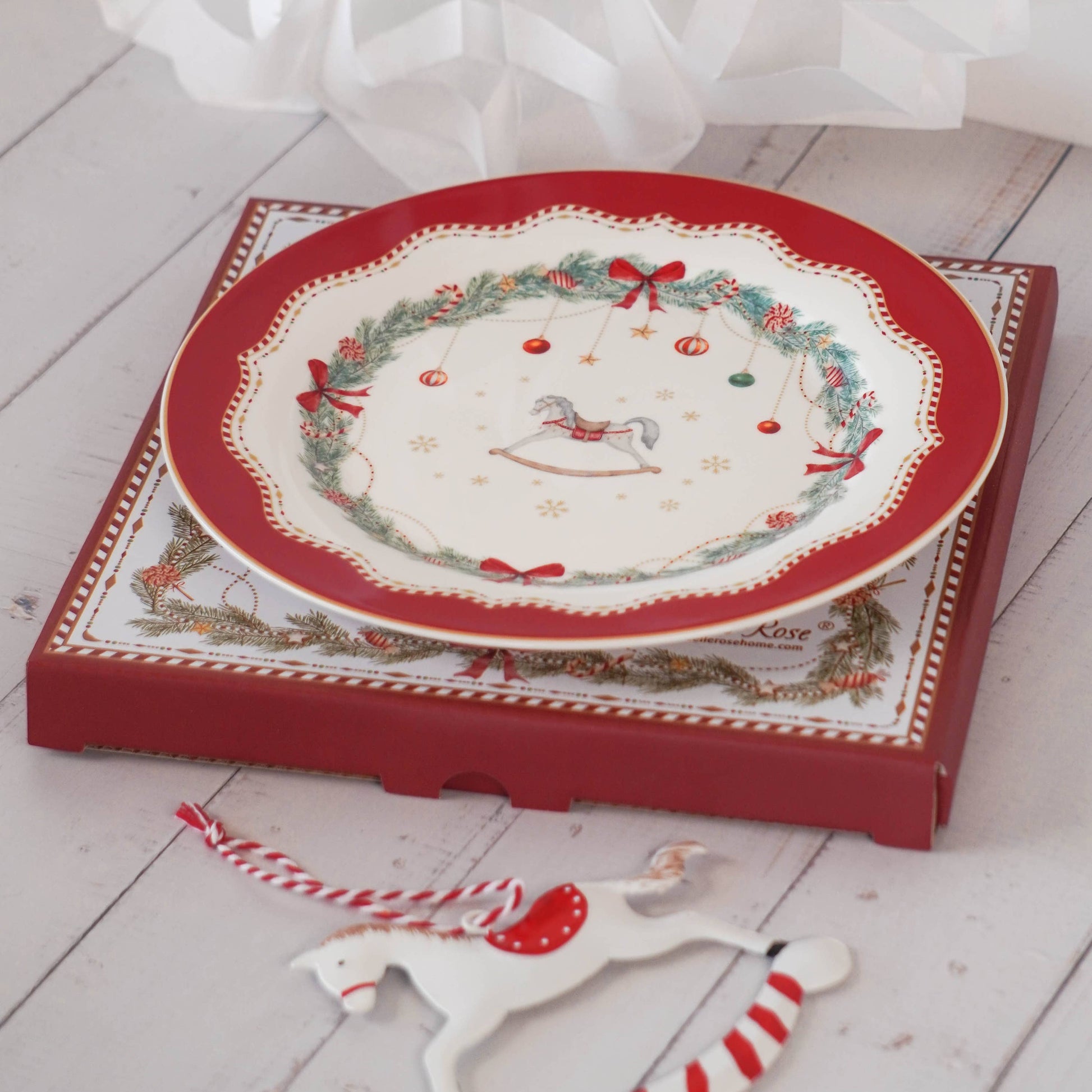 Porzellan-Dessertteller Schaukelpferd Frohe Feiertage