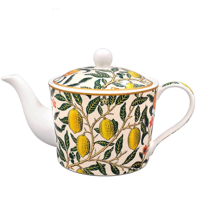 In einem liebevollen Design erblühen die schönen Zitronen- und Granatapfelzweige von William Morris auf einem zarten, cremefarbenen Hintergrund. Diese Vintage-Muster laden dazu ein, in eine Welt voller Eleganz und Naturverbundenheit einzutauchen. Eine feine Porzellan-Teekanne ergänzt das Ensemble und schafft eine harmonische Atmosphäre für gemütliche Teestunden.