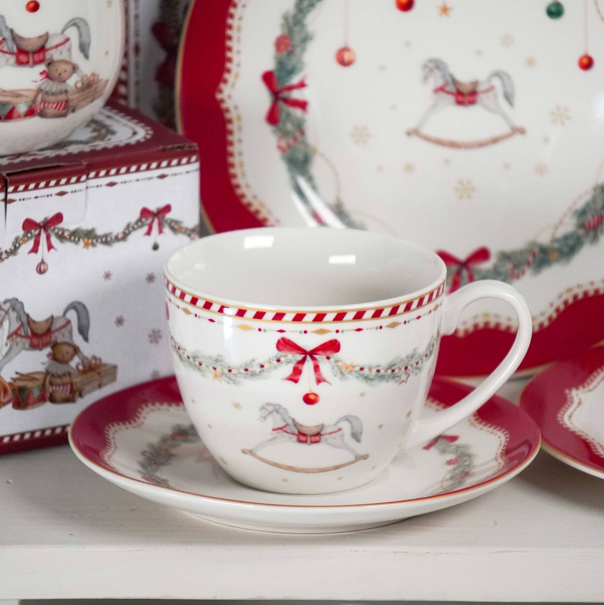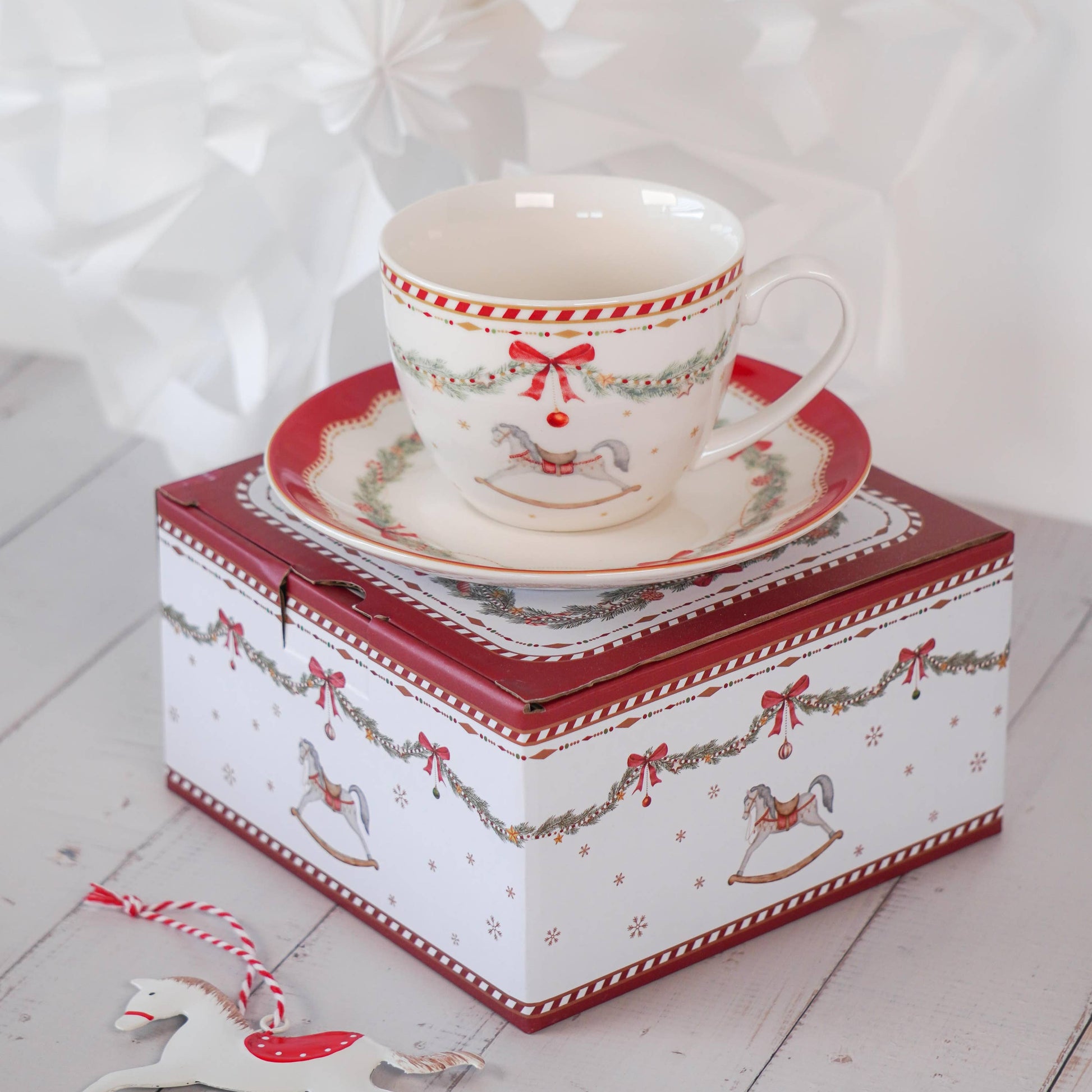 Diese festliche Tasse mit Untertasse aus edlem Porzellan ist der perfekte Begleiter für gemütliche Winterabende. Mit ihrem bezaubernden Weihnachtsdesign zaubert sie ein Lächeln auf jedes Gesicht. Außerdem wird dieser wunderschöne Porzellanartikel in einer liebevollen Geschenkverpackung geliefert – das ideale Geschenk für deine Liebsten! Genieß die besinnliche Zeit!