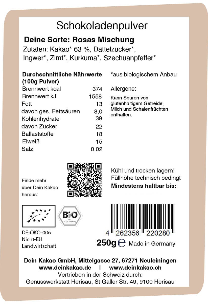 Rosas Mischung Bio-Schokoladenpulver Dein Kakao | vegan