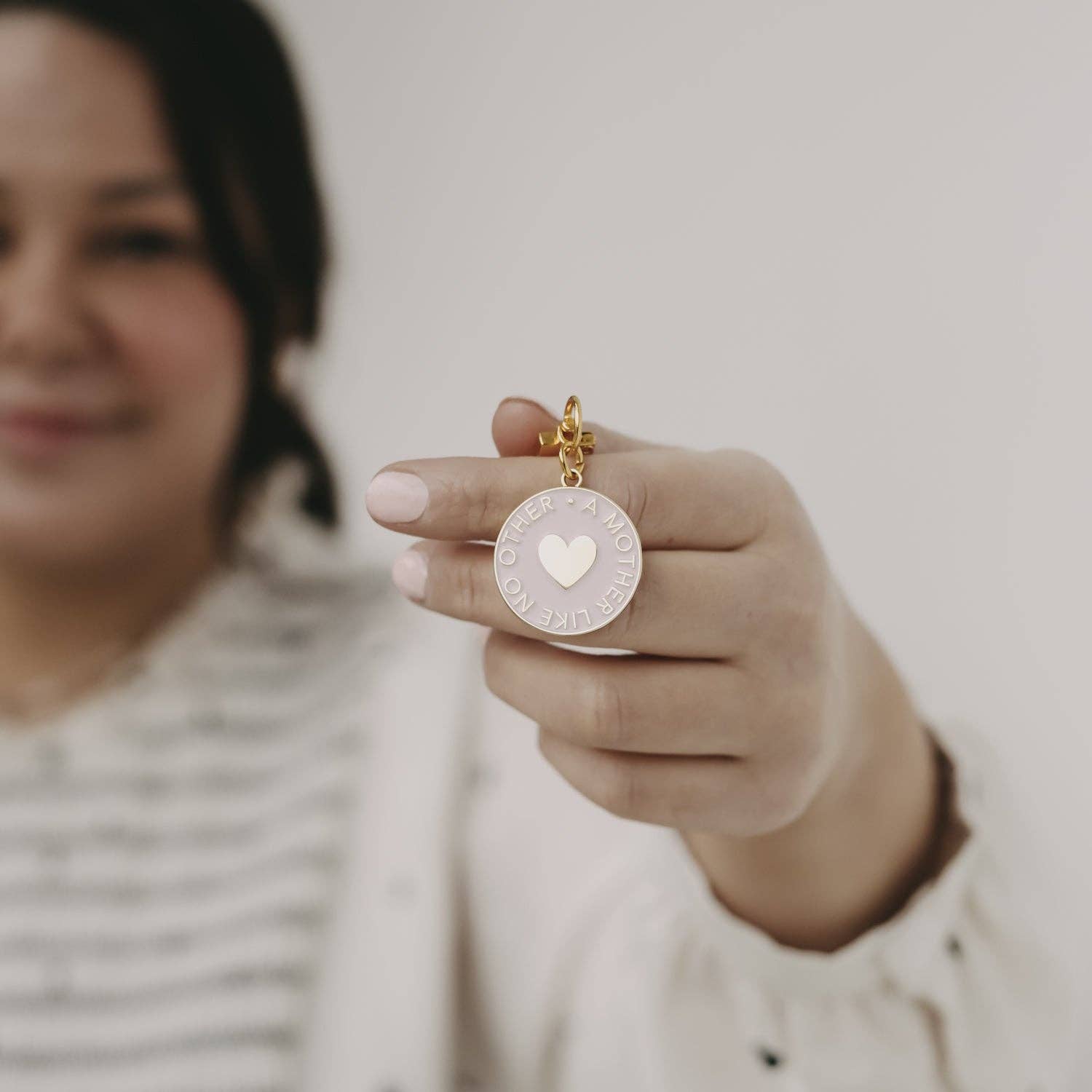 Unser Schlüsselanhänger Mother in einem liebevollen pastellrosa mit dem Schriftzug "A mother like no other" in gold ist frisch in unserem Shop eingezogen. Für alle Mamis und werdenden Mamis ist unser Schlüsselanhänger aus Metall genau das Richtige. Suchst du noch ein Geschenk für deine Mama zum Muttertag oder eine werdende Mama? Dieser leichte und handliche Schlüsselanhänger mit rosa Emaille-Design, und einem kleinen Herzen ist die perfekte Wahl. Zeige deine Wertschätzung und Liebe auf eine ganz besondere Art und Weise mit diesem zauberhaften Accessoire.