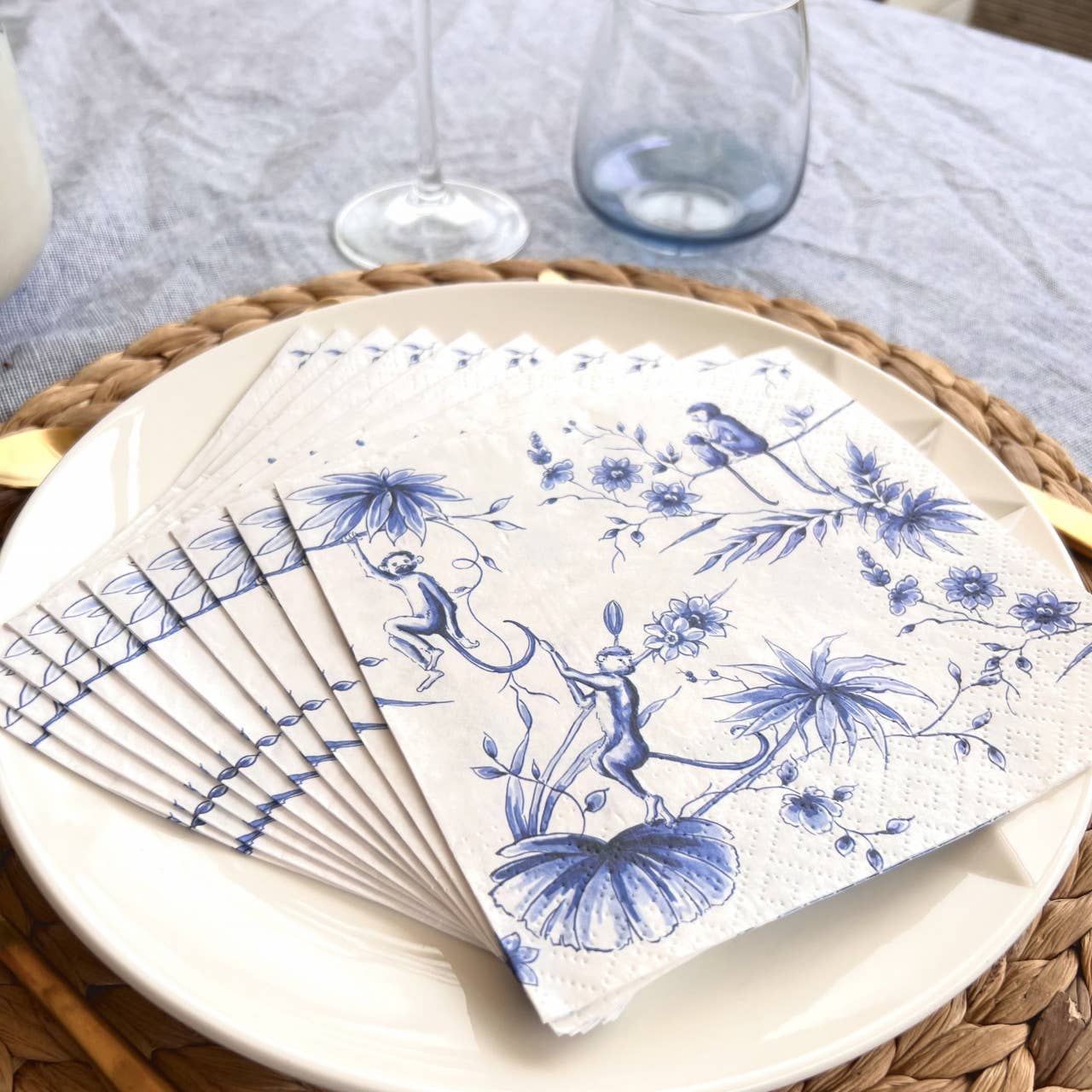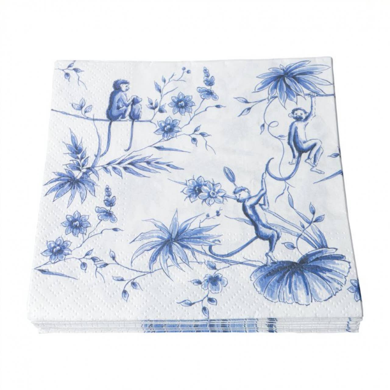 Verschönern Sie den Esstisch besonders schön mit diesen stilvollen Papierservietten mit Delfter Blaudruck. Das Design auf den Servietten ist ein Detail aus den Dekorationen der Sharing Moments Monkey Dinnerware Collection. So runden die Servietten das Bild ab und passen wunderbar zu diesem Geschirr von Janny van der Heijden, aber sie passen auch wunderbar zu unserem anderen Delfter blauen Geschirr. Die Papierservietten sehen dank des sorgfältig ausgewählten Designs luxuriös aus und sind auch schön zu verwenden. Schön, um einer Party einen echten holländischen Touch zu verleihen, aber auch geeignet, um einen wunderschön gedeckten Tisch komplett zu verkleiden. In einer Packung befinden sich 20 Servietten.