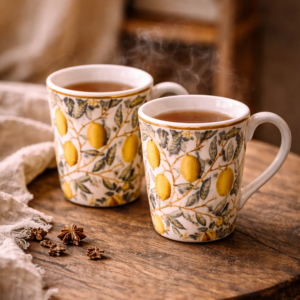 Entdecke das zeitlose Vintage-Muster von William Morris, das zarte Zitronen- und Granatapfelzweige auf einem sanften cremefarbenen Hintergrund zeigt. Dieses exquisite Design verleiht jeder Teestunde einen Hauch von Eleganz und Nostalgie. Genießen Sie Ihre Lieblingsgetränke aus diesem liebevoll gestalteten Set mit 2 Porzellantassen – ein wahrhaftes Kunstwerk für Ihr Zuhause.