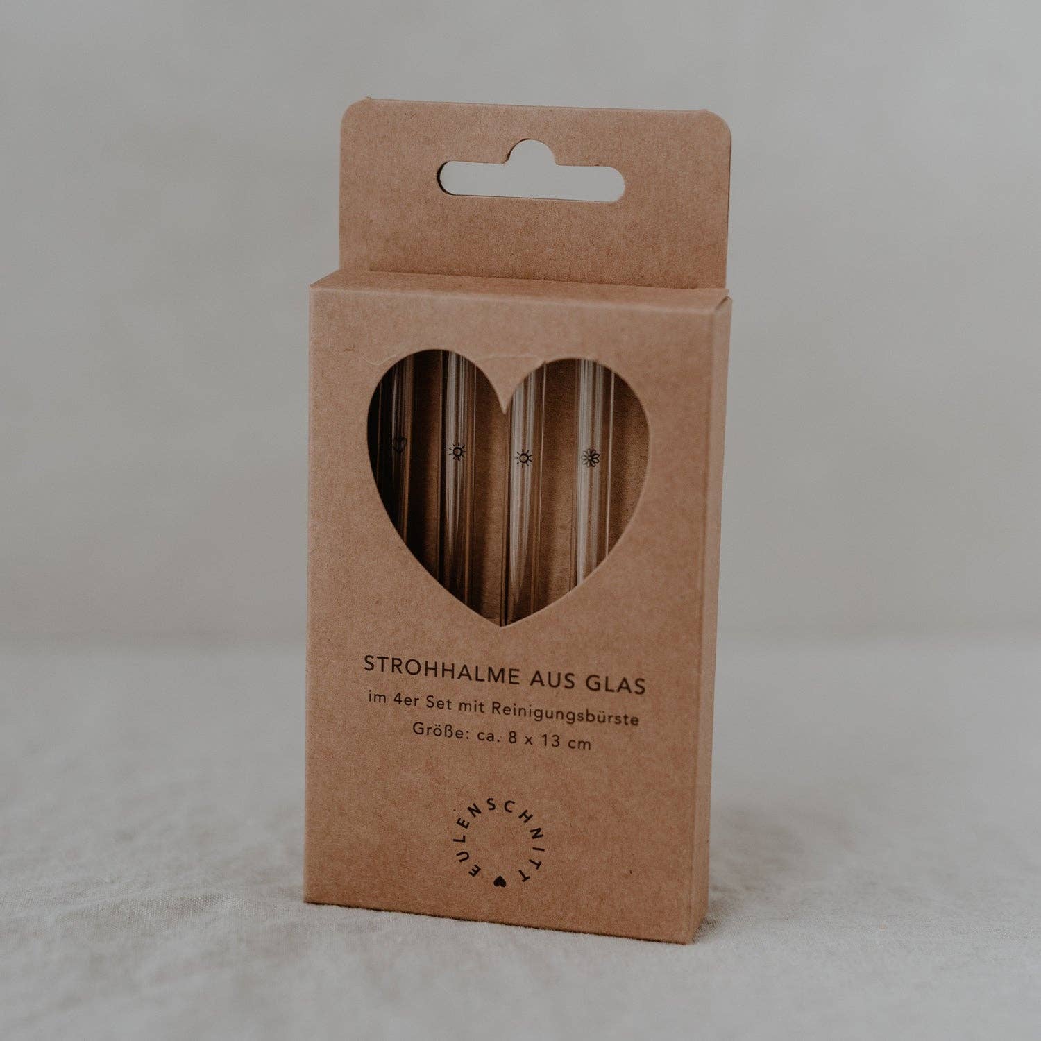 Entdeckt unsere wiederverwendbaren und wunderschönen Strohhalme Sommer aus Glas Mit unseren nachhaltigen und umweltfreundlichen Strohhalme aus widerstandsfähigem Borosilikatglas habt ihr die perfekte Alternative zu den allbekannten Einweg-Plastikstrohhalmen. Sie sind zudem super stabil und hitzebeständig. Unsere Strohhalme Sommer haben eine Länge von 13cm. Jeder Strohhalm ziert ein anderes wundervolles aufgedrucktes Symbol, so sieht euer Getränk nicht nur optisch toll aus, sondern ihr könnt es auch immer sofort von den anderen Gläsern und Getränken auf dem Tisch unterscheiden! Nach der Benutzung könnt ihr die Strohhalme einfach mit der beiliegenden Bürste sauber machen oder ihr reinigt sie ganz einfach in der Spülmaschine.