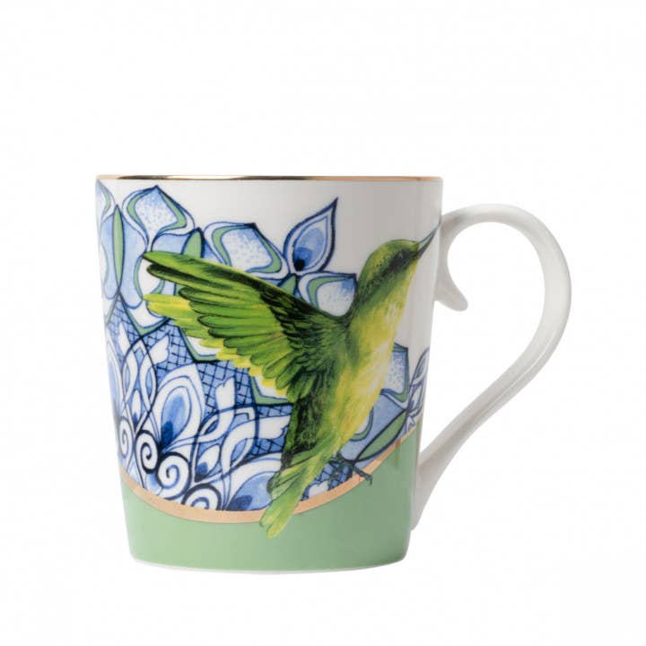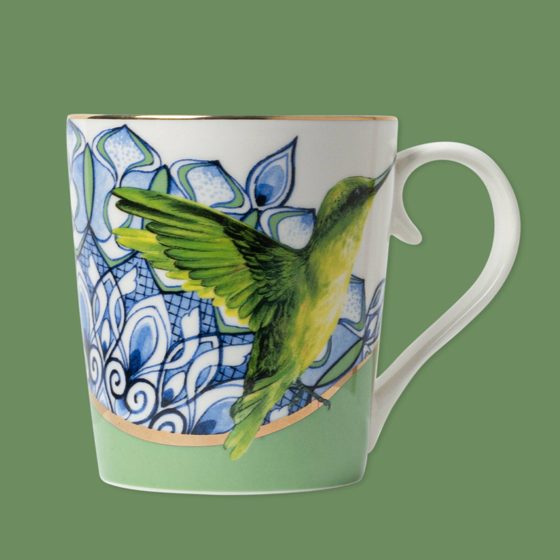 Diese fröhliche Tasse ist Teil unserer Mandala-Kollektion. Mandala-Zeichnungen stellen eine Reise in das Herz der Seele dar. Vertiefend, bereichernd und beruhigend. Genau wie eine wärmende Tasse Tee oder eine belebende Tasse Kaffee. Lassen Sie sich einen Moment verwöhnen und genießen Sie ein köstliches Heißgetränk mit diesen speziellen Mandala-Tassen. Lassen Sie sich in die Seele unserer faszinierenden blauen Welt von Delft entführen, die Hunderte von Jahren alt ist und wie das Mandala einst im Fernen Osten begann. Die grüne Farbe dieser Tasse ist erfrischend und anregend, während der Kolibri uns daran erinnert, das Hier und Jetzt zu genießen. Das farbenfrohe Muster bedeckt teilweise das blaue Mandala-Design von Delft, um darauf hinzuweisen, dass Perfektion nicht existiert und dass irgendwann alles vorübergehen wird. Genau wie Mandalas im Sand, die nach dem Zeichnen gelöscht werden.