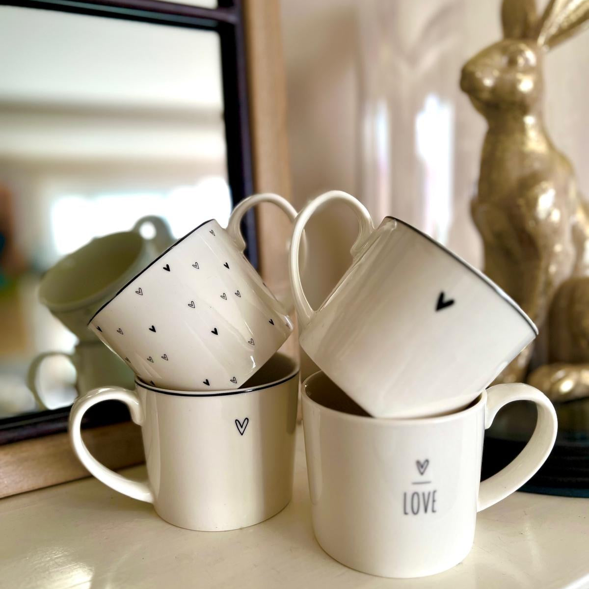 Diese weißen Keramiktassen mit Herzmotiv sind der perfekte Begleiter für deine Kaffee- oder Teerunden mit Freunden. Sie bringen eine herzliche, liebvolle Note in deinen Alltag und eignen sich super als Geschenk für Freunde oder die Familie. Ob beim Frühstück oder im Büro – die Tassen sorgen immer für gute Laune! Hol dir deine Portion Liebe ins Leben! Festlegen = 4 Stück, verschiedene Motive je 1x