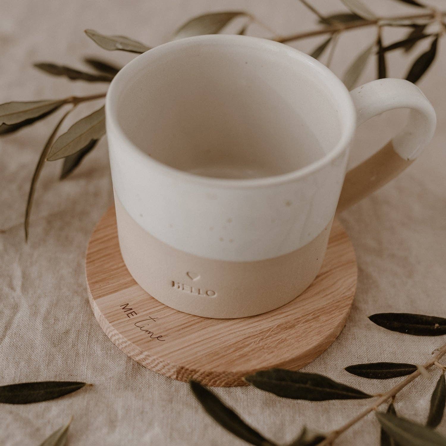 Ihr habt sie euch so lange gewünscht, deshalb freuen wir uns umso mehr euch unsere neuen Untersetzer aus Eichenholz vorstellen zu können - wie unseren Untersetzer Me Time. Die perfekten Begleiter zum Servieren von Getränken. Diesen Untersetzer ziert der handgeschriebene Spruch 'Me Time' Set = 2 Stück